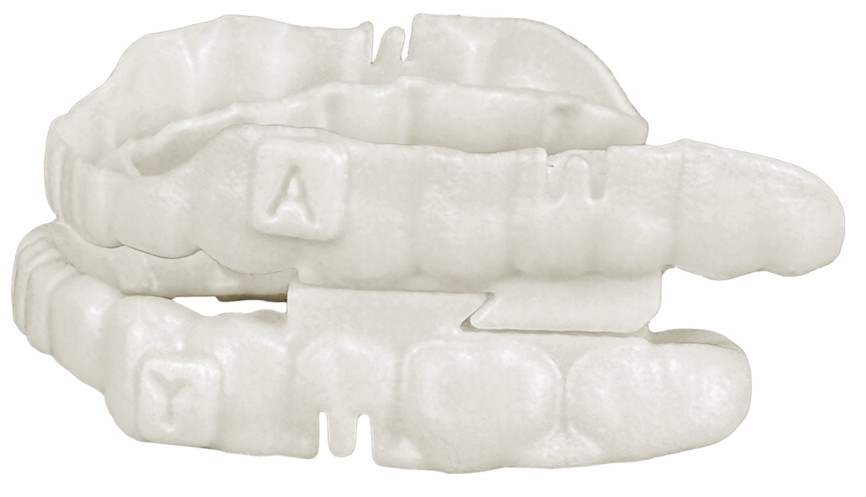 A custom-fit mandibular advancement device made from medical-grade nylon gently repositions the lower jaw to keep the airway open during sleep. FDA-cleared and patented, it helps reduce snoring and mild to moderate obstructive sleep apnea, while prioritizing comfort, durability, and easy cleaning. Its low-profile, hardware-free design provides a smooth, unobtrusive feel for natural sleeping and breathing.